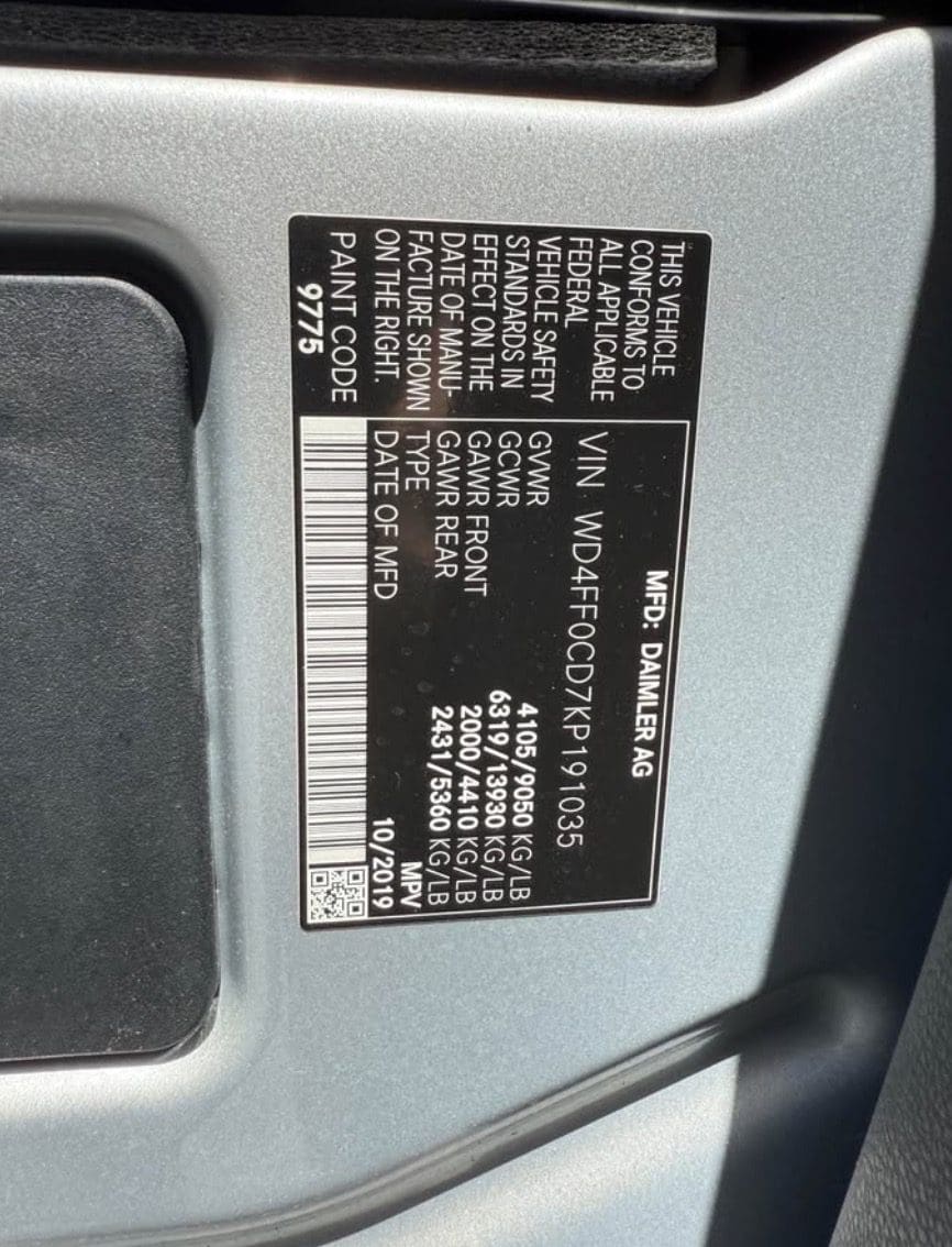 Year/Model: 2019 Mercedes-Benz Sprinter 2500 Crew Van